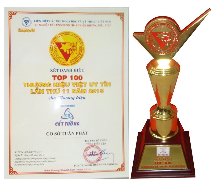 Cơ sở lịch vạn niên CÁT TƯỜNG xin chân thành cảm ơn các Nhà Đại Lý phân phối, các Cửa Hàng, Người tiêu dùng đã tín nhiệm và bình chọn Thương Hiệu Lịch Vạn Niên CÁT TƯỜNG của Cơ Sở chúng tôi đạt danh hiệu: